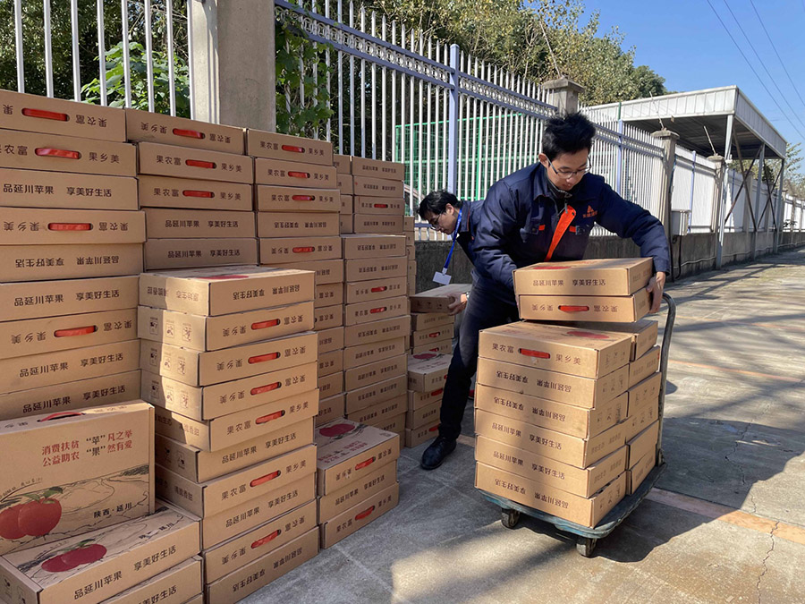 公司將扶貧愛心蘋果分發(fā)到長齡的每一位員工,大家興高采烈領(lǐng)取,一是在這個深秋時節(jié),能品嘗到正宗的陜西蘋果;二是,覺得公司的這個活動很有意義,能夠在實際行動上幫助了當?shù)氐霓r(nóng)民。